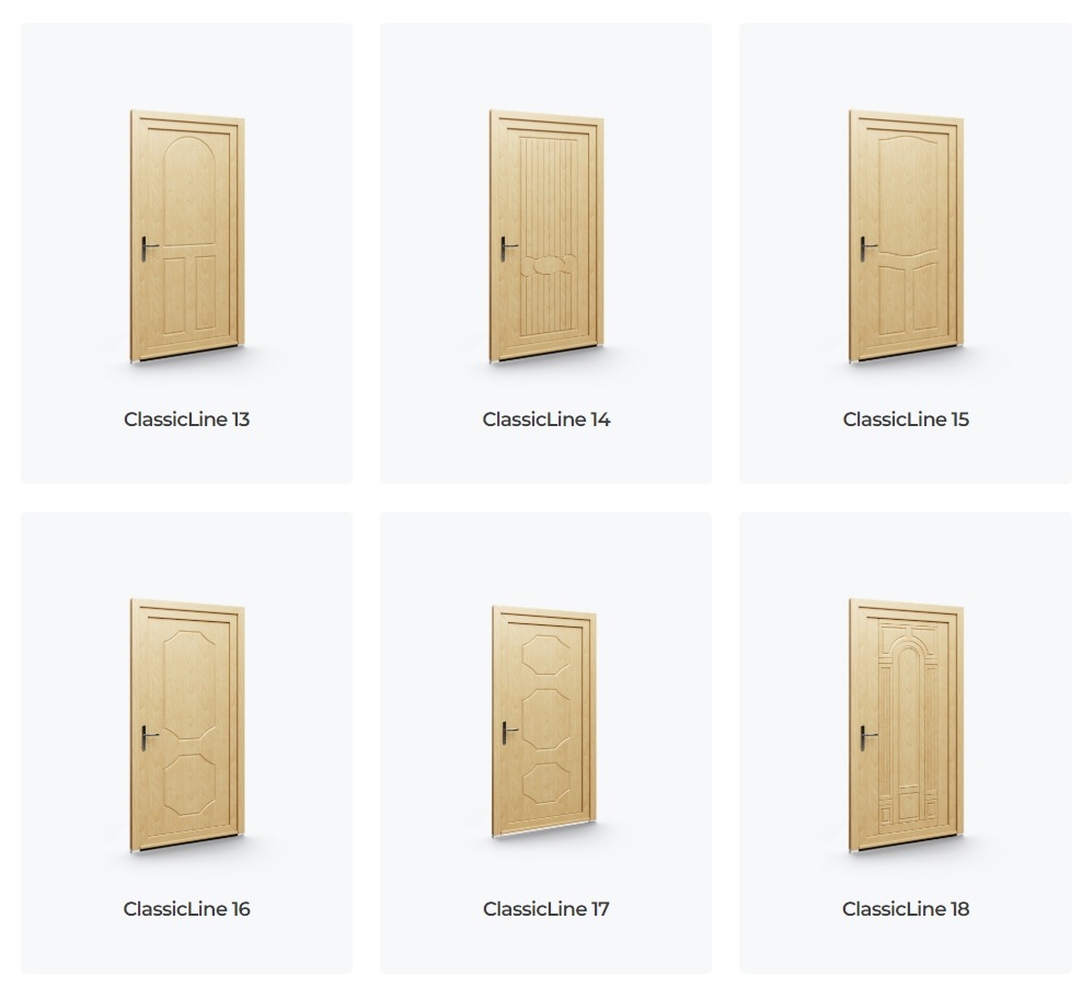ClassicLine ist eine Kollektion von geprägten PVC-Paneelen, die durch ihre außergewöhnlichen Formen und Farben besticht. ClassicLine steht für Nutzungskomfort, kombiniert mit Funktionalität und einzigartiger Ästhetik. Die Füllung wird auf der Grundlage von PVC-Folie, einer speziellen Platte, Leim und einer Polyurethanplatte hergestellt. Sie haben die Möglichkeit, die gepressten ClassicLine-Paneele in verschiedenen Farben aus der Aluplast- oder Salamander-Palette zu bestellen. Auf Wunsch kann das Paneel ein- oder beidseitig furniert werden oder Sie können die Farbgestaltung nach Ihren Wünschen anpassen..